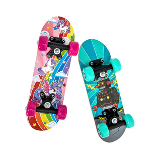 Picture this: your child cruising down the sidewalk, mastering new tricks at the skate park, or simply enjoying the thrill of the ride with friends. With our ATOM skateboard, every journey becomes a thrilling adventure. Crafted specifically for kids and teens, these 17"" skateboards are the perfect blend of style, durability, and performance. Made from high-quality materials, they're built to withstand the bumps and scrapes of everyday skateboarding while providing a smooth and stable ride. Plus, they're lightweight and easy to carry, making them perfect for on-the-go fun wherever your adventures take you. Safety is always our top priority, which is why our skateboards are designed with stability and control in mind. With sturdy trucks and grippy wheels, your child can skate with confidence, knowing they're supported every step of the way.