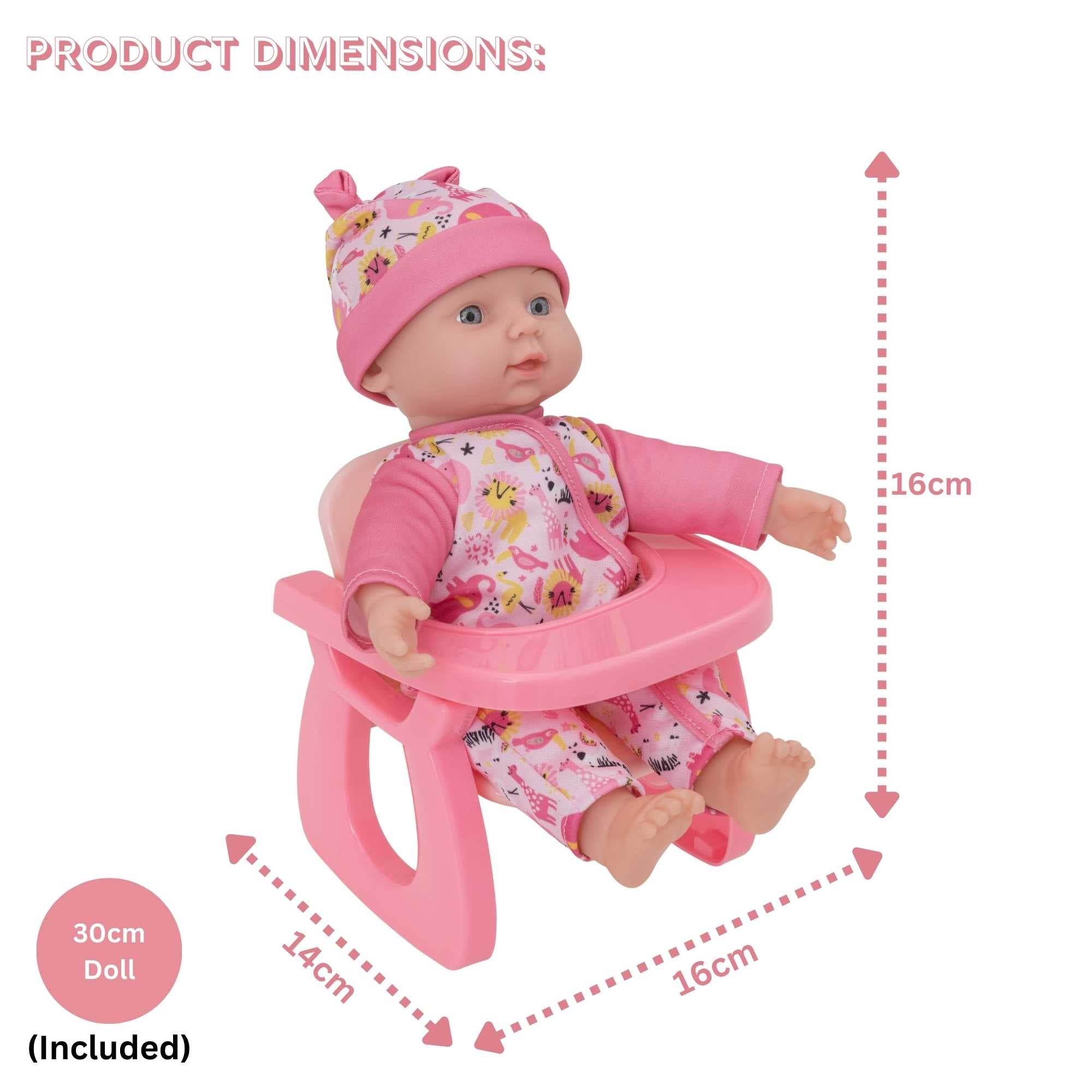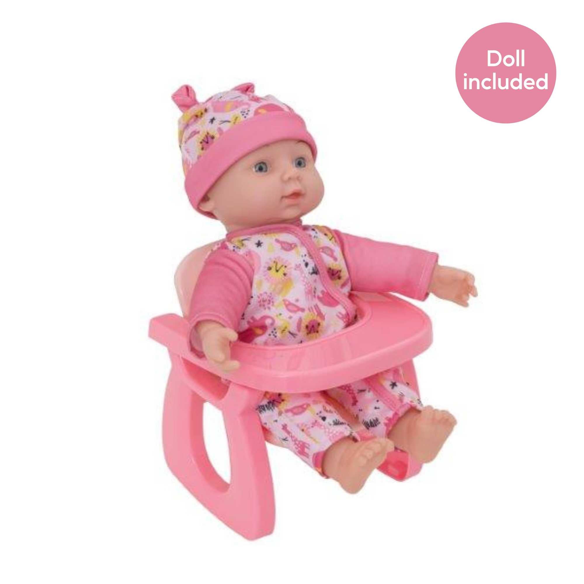 Watch them grow, learn, and create unforgettable memories with their new favourite playtime Doll. The possibilities are limitless, providing hours of entertainment. Your little one can be just like mummy or daddy with this BabyBoo Dolly highchair and rocking chair. This BabyBoo Interchangeable Dolly Chair and rocking chair includes 30cm doll & Baby chair. Baby chair can be used as a feeding chair & rocking chair. Perfect addition to your home and will encourage play baby doll games along with nurturing and imagination. Designed in a playful jungle theme, this is the perfect set for playtime with your favourite doll or character teddy. The sturdy construction ensures it can withstand even the most enthusiastic play sessions.