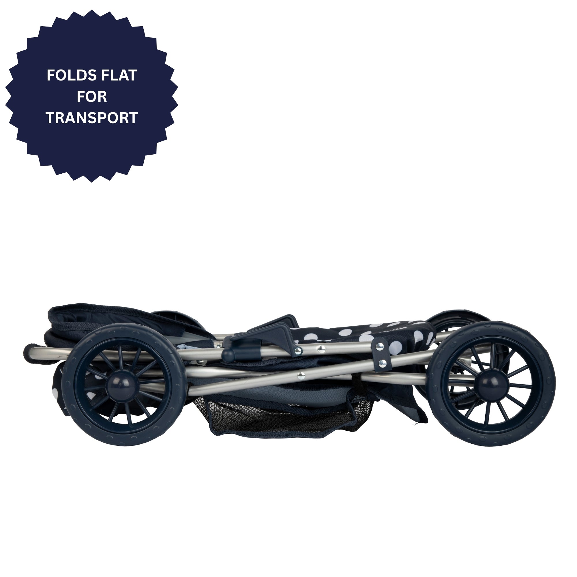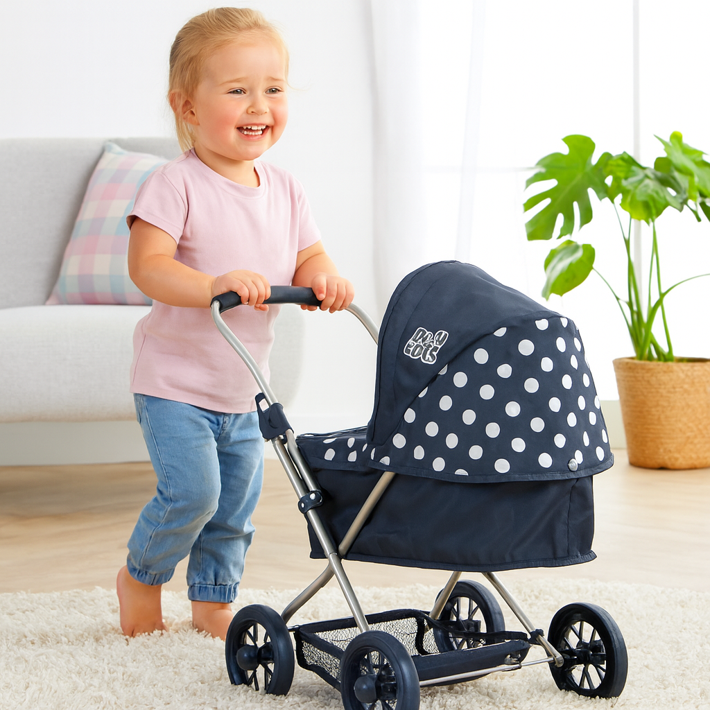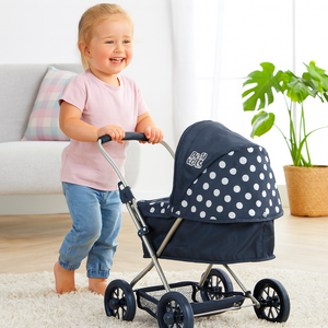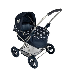 Dolly Tots Cutie Dolls Pram | Navy Polka Dot | Ages 3+