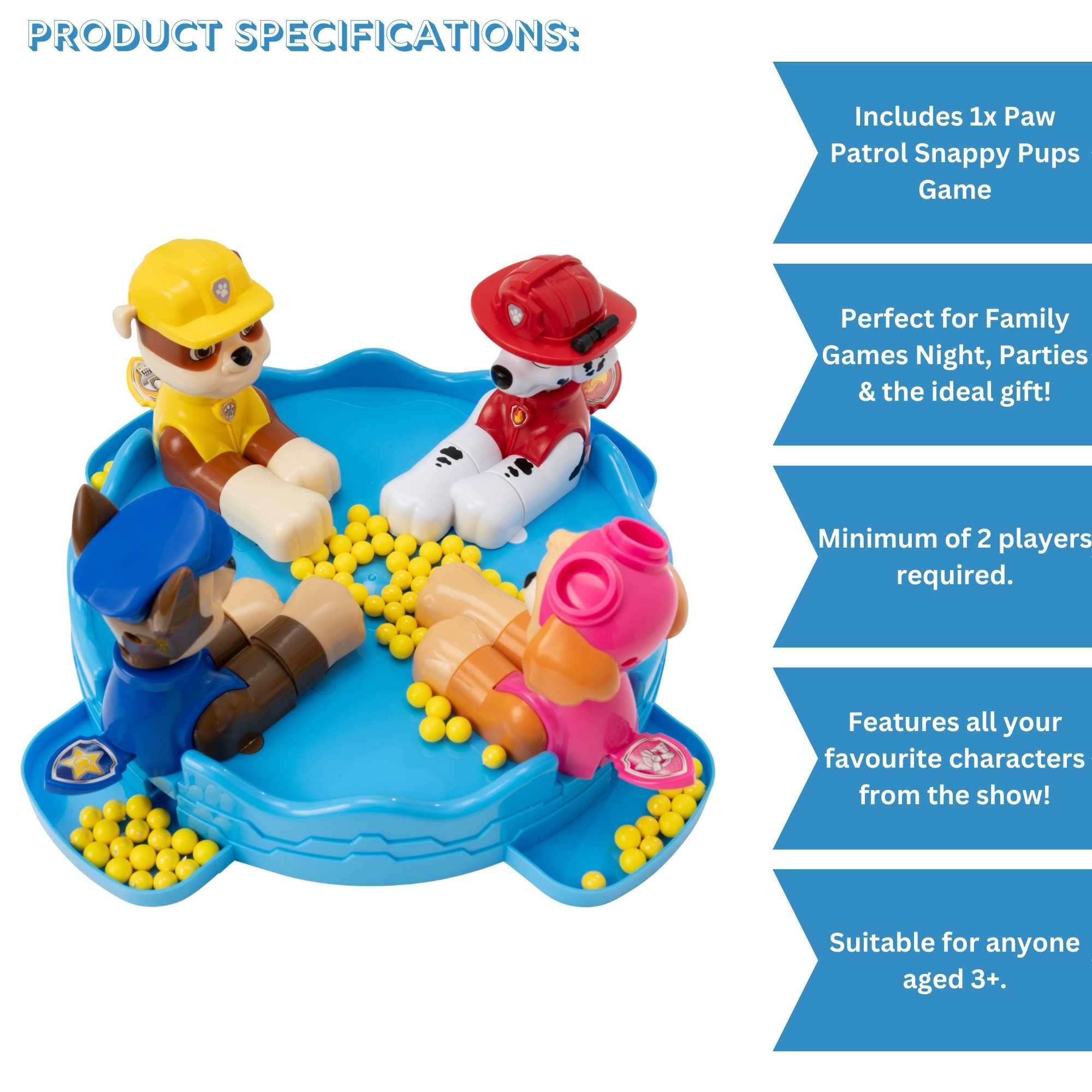 Get ready for fast-paced fun with the Paw Patrol Snappy Pups Family Game – an action-packed game featuring your child’s favourite rescue pups: Chase, Skye, Marshall, and Rubble! Kids will love the thrilling race to catch the most balls using their chosen character. Simply press down on your pup’s back to snatch up the balls – it’s energetic, competitive, and guaranteed to spark giggles with every round.
