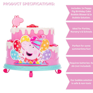 A must-have for any Peppa Pig fan, the Peppa Pig Birthday Cake Bubble Machine is the perfect party accessory or gift for young children. It’s the ideal way to add extra fun and joy to any celebration, offering endless bubble-blowing fun that’s sure to make every day feel like a party!