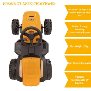 Meet the EVO JCB Battery Operated Tractor Ride-On, the perfect gift for your budding farmer! This battery-powered tractor is designed to give your little one a taste of farm life while providing hours of exciting, safe play.