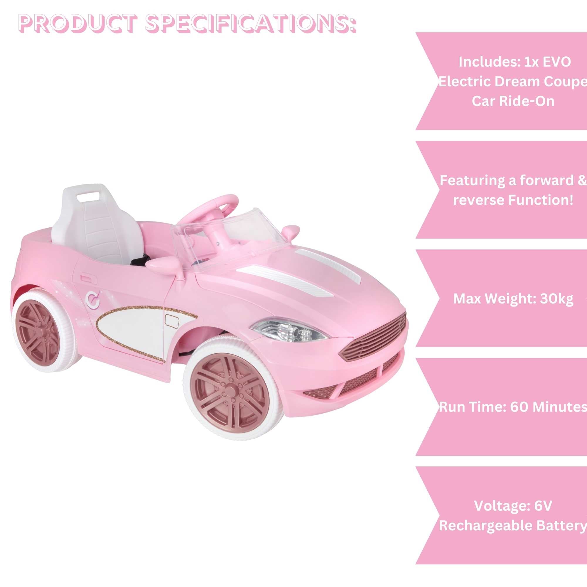 Watch as they embark on countless journeys, exploring the world around them with confidence and joy. The EVO Dream Coupe is more than just a toy; it's an experience!