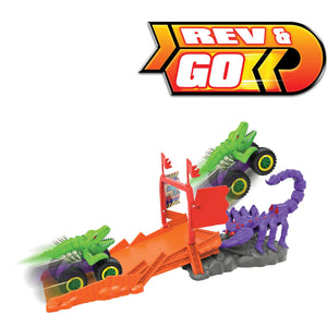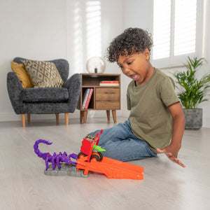 Unleash the Beast with the Monster Jaws Scorpion Slam playset! With its fierce scorpion-inspired design and unstoppable performance, this monster car is not just fast – it's a force to be reckoned with! Watch in awe as the car races through the track, smashing through obstacles, shattering barriers, and narrowly avoiding treacherous traps. Challenge each other to epic races, epic stunts, and unforgettable showdowns that will create lasting memories!