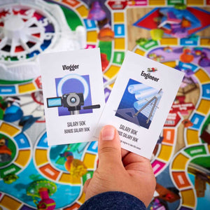 Bringing laughter and bonding to your home, The Game of Life is an ideal indoor pastime for 2-4 players aged 8 and above. Whether you're seeking engaging family fun, entertaining game nights, or lively parties, this game promises a memorable experience. With colourful pegs to assemble your crew and each crossroad offering surprises, The Game of Life invites you to make pivotal decisions, embark on exciting journeys, and explore the thrill of investment. Remember, parental supervision is advised, and the game is not suitable for children under 3 years old. Let the adventures begin!.