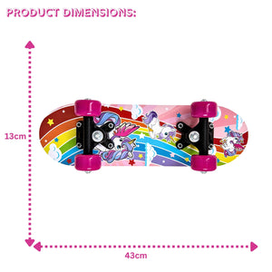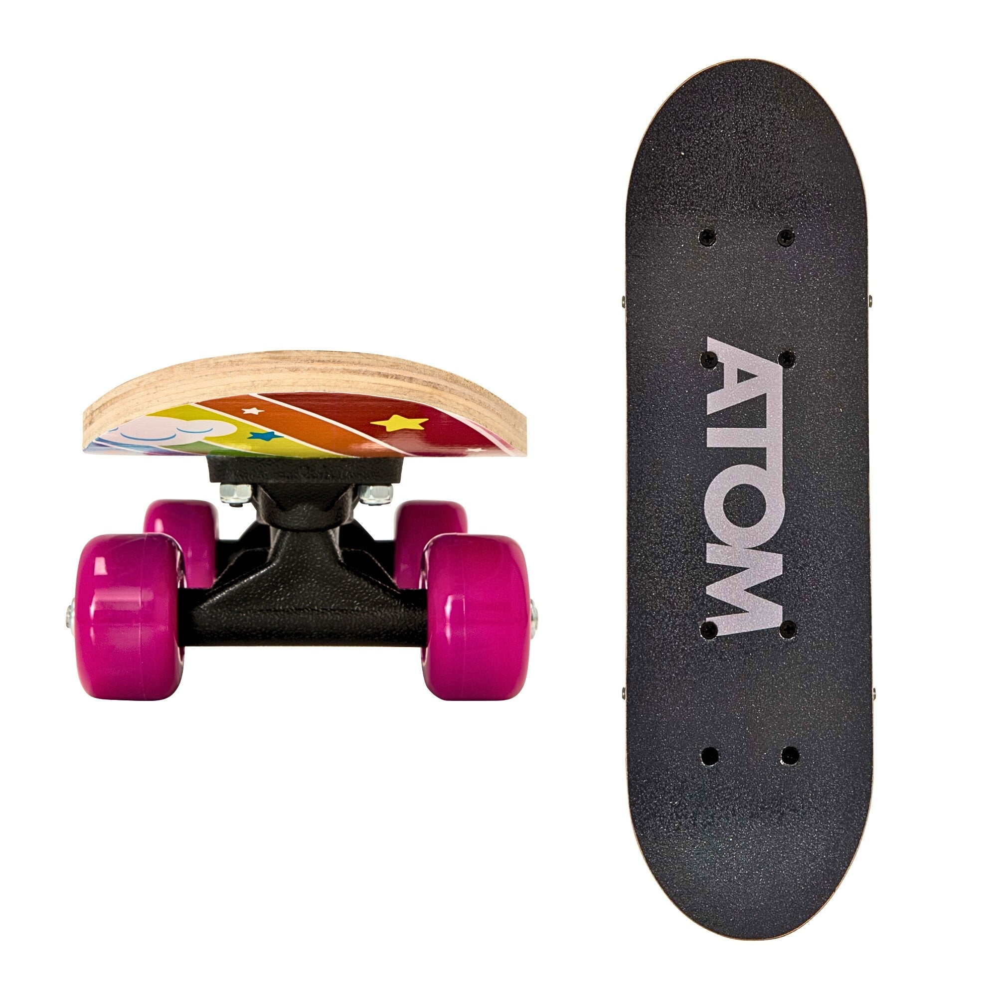 Picture this: your child cruising down the sidewalk, mastering new tricks at the skate park, or simply enjoying the thrill of the ride with friends. With our ATOM skateboard, every journey becomes a thrilling adventure. Crafted specifically for kids and teens, these 17"" skateboards are the perfect blend of style, durability, and performance. Made from high-quality materials, they're built to withstand the bumps and scrapes of everyday skateboarding while providing a smooth and stable ride. Plus, they're lightweight and easy to carry, making them perfect for on-the-go fun wherever your adventures take you. Safety is always our top priority, which is why our skateboards are designed with stability and control in mind. With sturdy trucks and grippy wheels, your child can skate with confidence, knowing they're supported every step of the way.