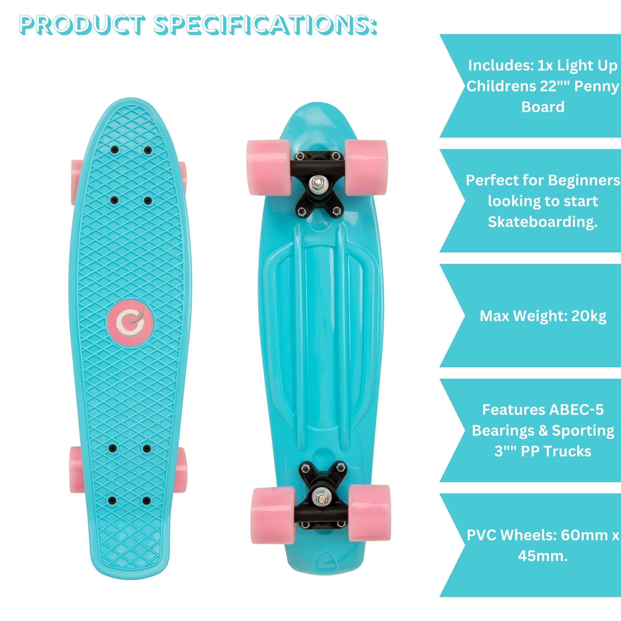 Picture this: gliding through the streets as your board lights up the night with vibrant LED colours, turning heads and spreading smiles wherever you go. With its sleek design and compact size, this Penny Board isn't just a mode of transportation; it's a statement. But wait, there's more! Crafted from high-quality materials, the EVO Light Up Penny Board isn't just about looks – it's built to last. Whether you're cruising to class, hitting the skate park, or just exploring the neighbourhood, this board is up for any adventure you throw its way. Safety first, right? You bet. The EVO Light Up Penny Board is designed with your well-being in mind, featuring reliable LED lights that not only look awesome but also keep you visible and safe, day or night.