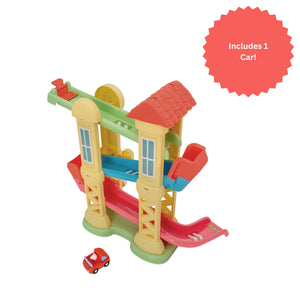 Featuring bright colours and Peppa Pig character details, this playset is perfectly sized for small hands. The freewheeling car included is easy to push and play with, making it a great introduction to vehicle play for toddlers. With its chunky, durable design, this toy is safe, lightweight, and built for endless fun at home, playdates, or nursery.