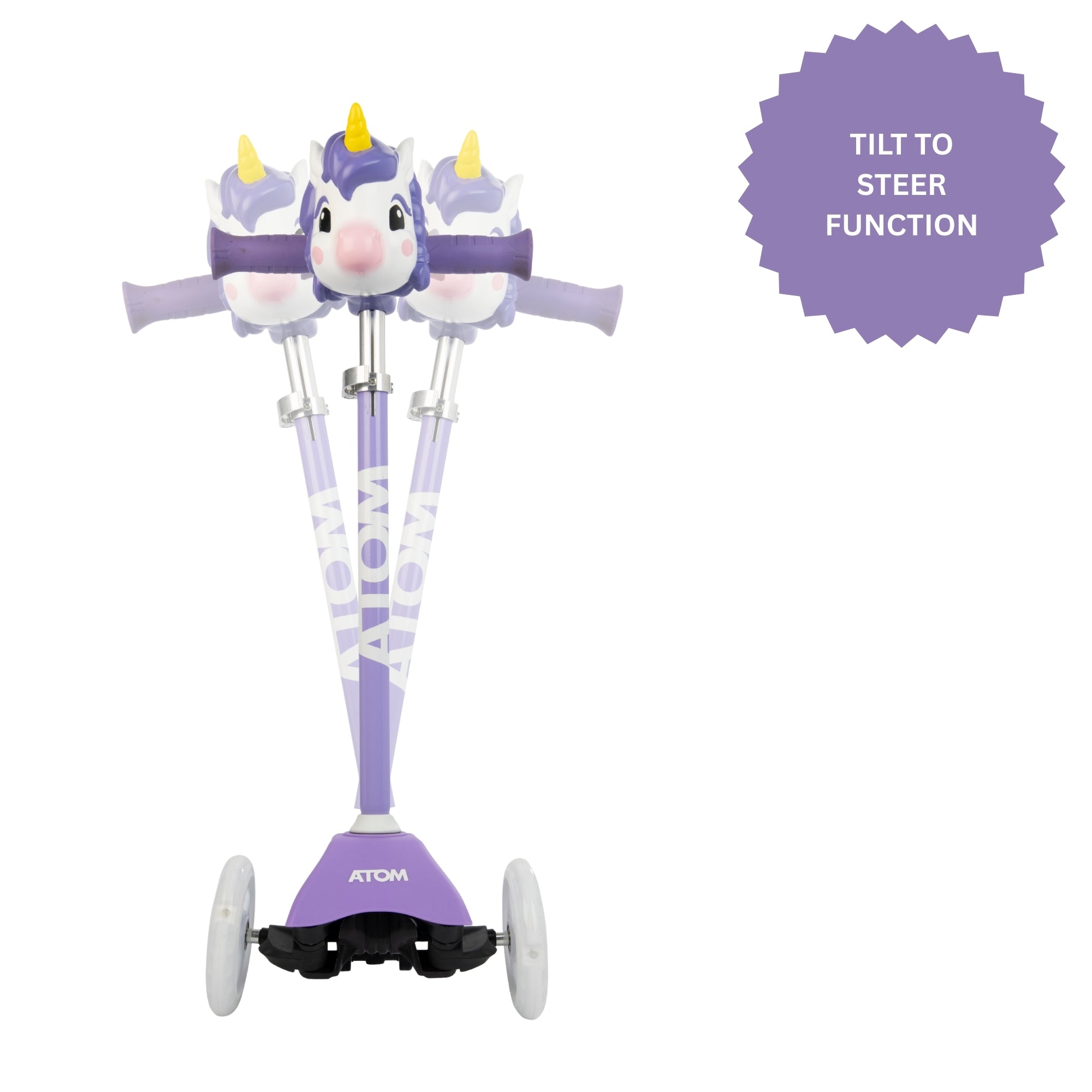 Get your little one moving with the ATOM Light Up Mini Cruiser Scooter – a fun and exciting first ride for toddlers aged 2 years and up. Available in two eye-catching designs, this scooter features a bold dinosaur theme or a sweet unicorn theme, complete with a matching character head on the front for imaginative, character-filled adventures.