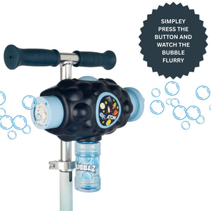 Equipped with a built-in bubble machine, this scooter leaves a trail of bubbles behind as your child scoots along. A bottle of bubble solution is included, so the fun starts right out of the box—just pour it in and go!