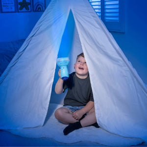 Safe, sturdy, and easy to use, the Bluey Colour Changing Torch is built to handle even the most thrilling toddler adventures. Ideal for children aged 6 months and up, it promotes sensory development, fine motor skills, and imaginative play. A fantastic gift for birthdays, Christmas, or everyday fun — this light-up Bluey torch brings colour, sound, and learning together in one adorable toy.