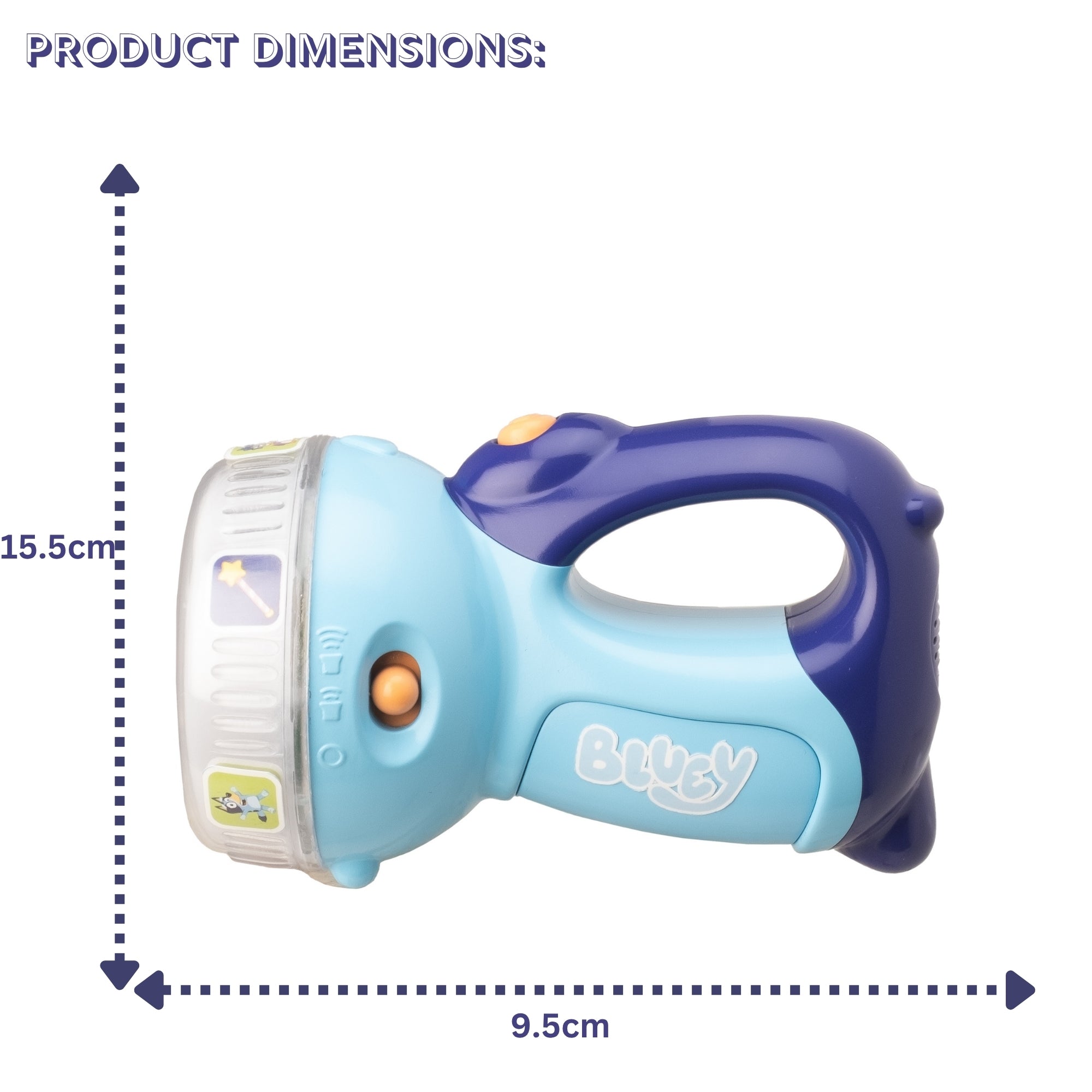Featuring over 6 colour options and 7 sound effects, this Bluey torch makes every playtime feel like an adventure. When your child turns the top, they’ll hear fun sounds from the Bluey show while a matching light shines, helping them learn colour recognition and cause-and-effect through play. Whethis exploring around the house, playing in a fort, or lighting up storytime, this toy keeps little ones engaged and entertained.