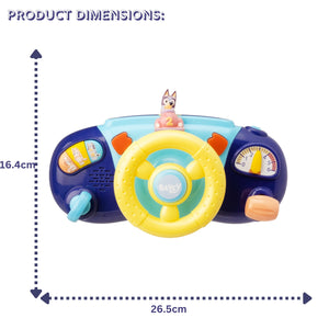 Get ready to drive into fun with the Bluey Activity Dashboard! Perfect for curious little hands, this colourful and interactive toy is packed with engaging lights, sounds, and moving parts that bring imaginative play to life. With its bright design and fun Bluey theme, your child can turn the wheel, flash the indicators, and shift gears – just like a real driver!