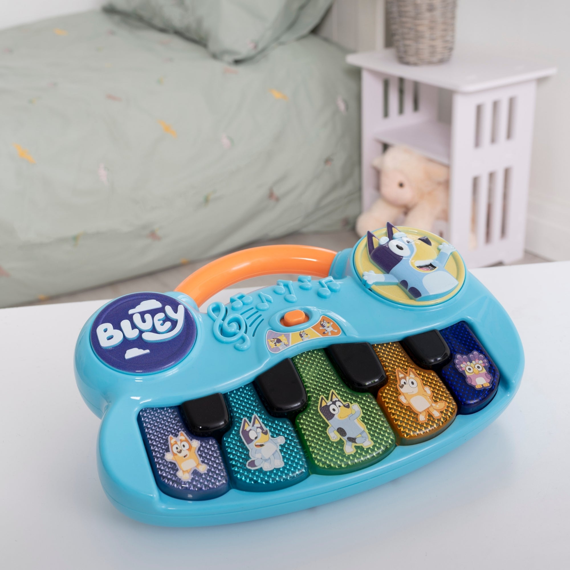 Built with little hands in mind, this durable and child-safe keyboard is perfect for children aged 12 months and above. Its lightweight design and carry handle make it easy to take anywhere, ensuring hours of creative fun at home or on the go. The Bluey My First Keyboard is a brilliant gift for birthdays, Christmas, or any special occasion — sparking imagination, encouraging musical play, and inspiring endless smiles. (Requires 3x AA batteries, not included.)