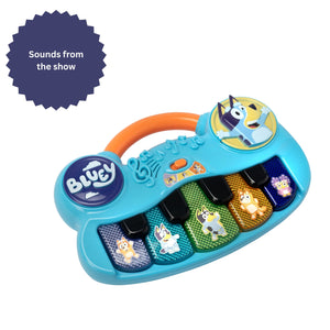 Designed to grow with your little one, the Bluey Keyboard features two fun modes – Piano Mode and Fun Mode. In Piano Mode, children can press the colourful keys to create their own tunes, while Fun Mode plays familiar sounds and phrases from the beloved Bluey TV show. This playful mix of music and character sounds keeps little ones entertained while supporting early learning and development through sound, colour, and touch.