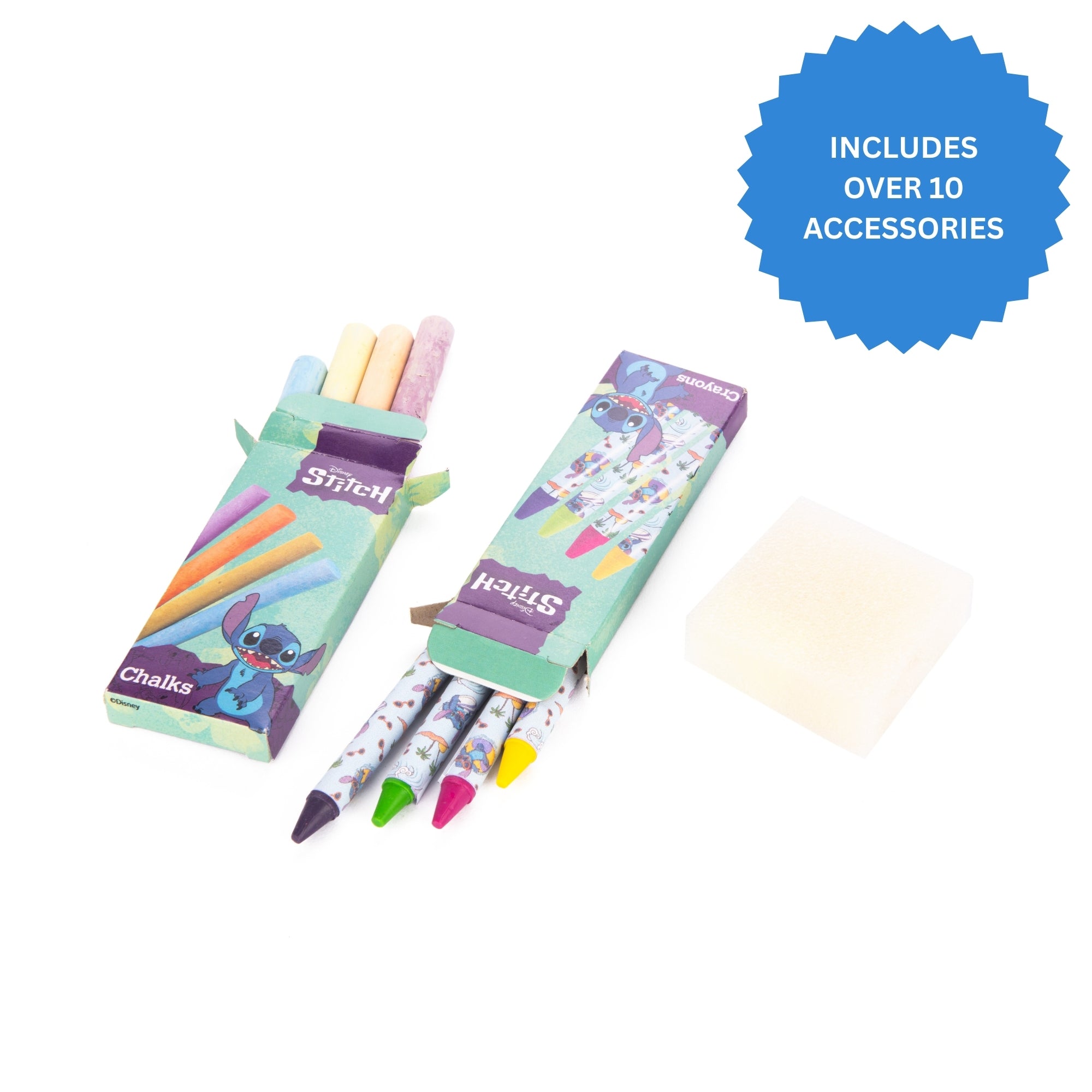 Bring creativity wherever you go with the Disney Stitch Travel Art Easel – the perfect companion for little artists aged 3 and up. This portable double-sided easel features a chalkboard on one side and a drawing pad surface on the other, encouraging mess-free fun whether at home, in the car, or on holiday. Packed inside the compact carry case are crayons, chalks, a marker pen, sponge, eraser, and colouring sheets, all themed around everyone’s favourite blue alien, Stitch.