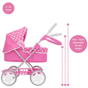 Introducing the Dolly Tots Junior Dolls Pram - Where Little Hearts Lead the Way! The Dolly Tots Junior Dolls Pram - a delightful miniature pram designed specifically for the tiniest hands and biggest imaginations!