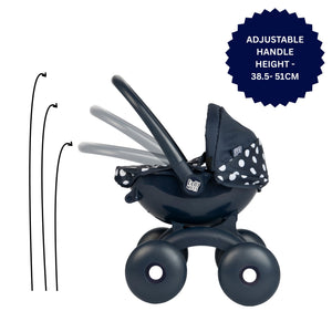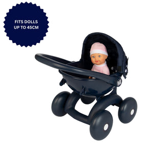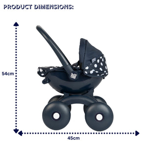 Introduce your little one to the world of imaginative play with the Dolly Tots My First 4-in-1 Dolls Pram in Navy. Specially designed for toddlers aged 18 months and up, this clever and compact pram easily converts between pram, baby seat, pushchair, and car seat—offering four exciting ways to play in one delightful set.