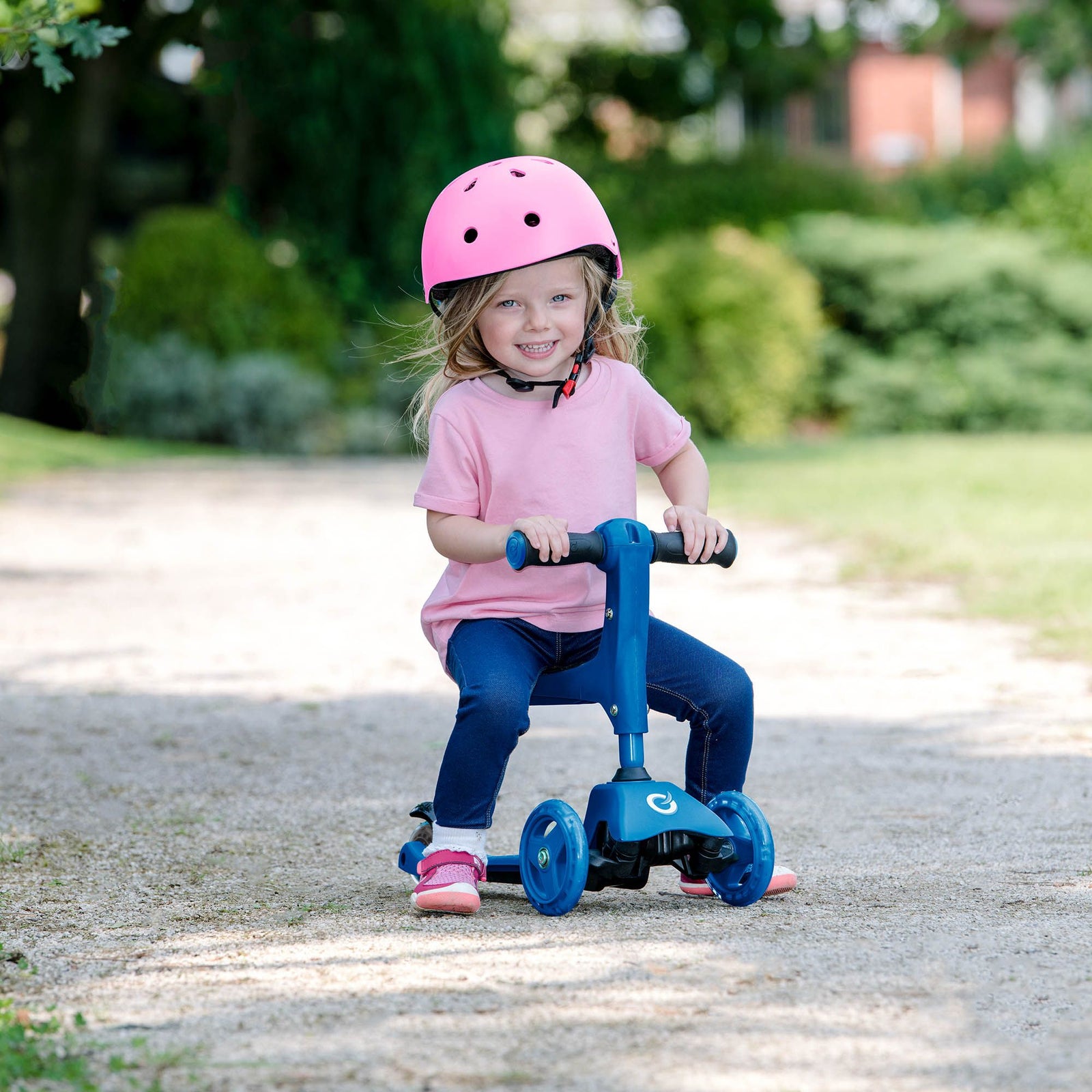 The EVO 3-in-1 Children's Scooter features a 3-stage design, from balance bike to Move N Groove Scooter. Adjustable handle heights, max weight 35kg, and a durable build ensure years of fun and development for kids aged 2+.