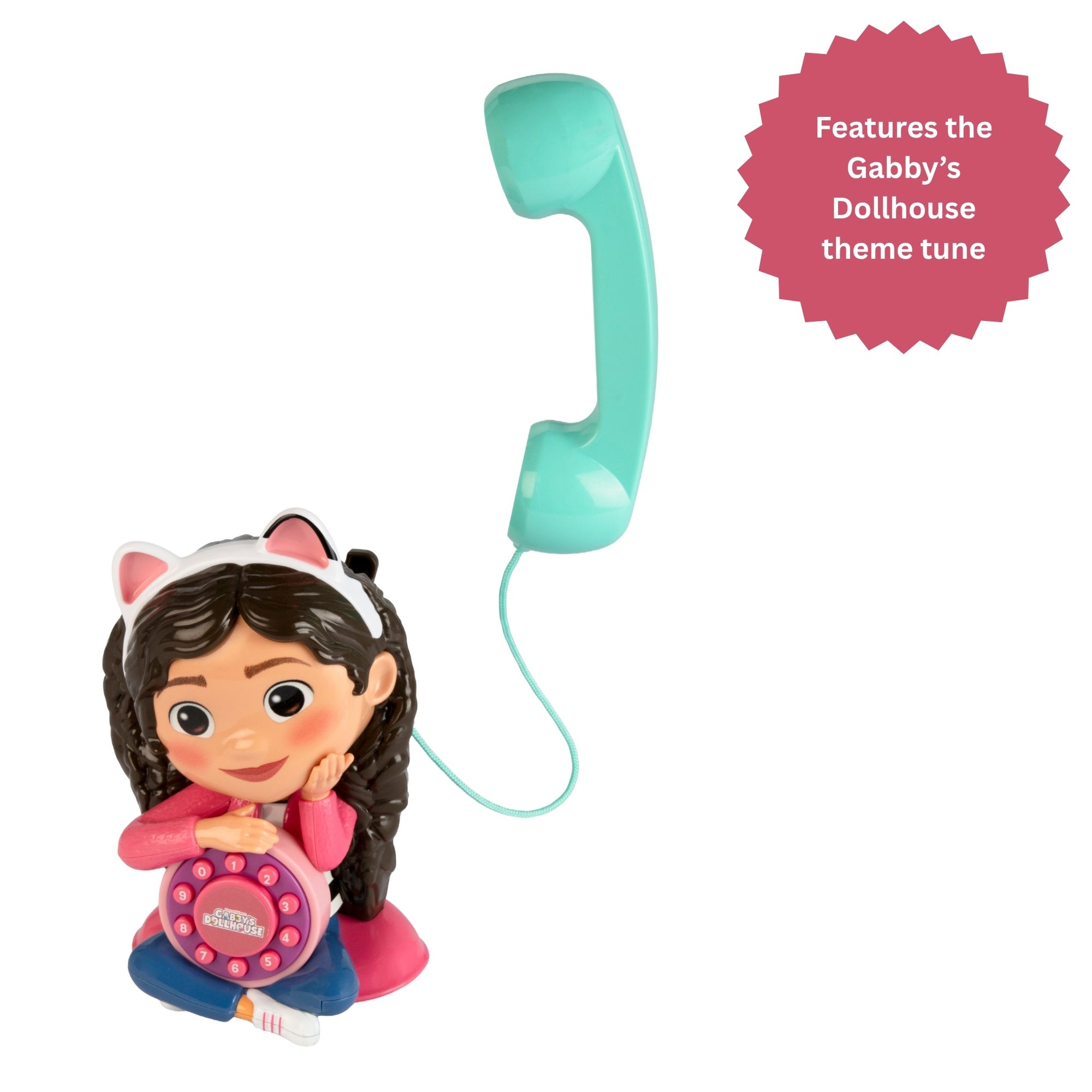 • Features: Plays the Gabby’s Dollhouse theme tune | Hear fun sounds and voices from the show | Pick up the handset to answer calls | Encourages imaginative role play and communication skills