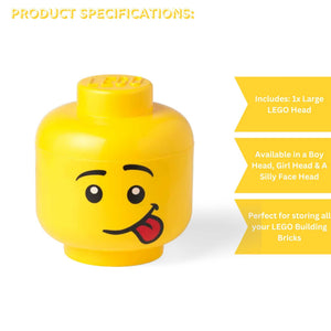 LEGO® Large Storage Head - Silly Face - Fun & Stackable Toy Organizer