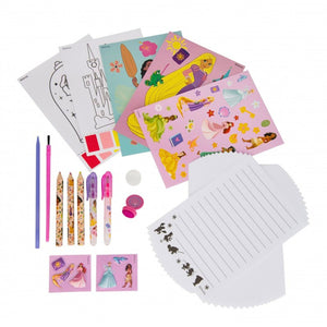 Unlock a world of creativity with the Disney Princess Surprise Activity Craft Set, featuring a secret key that opens four hidden doors to reveal a treasure trove of gel pens, crayons, stamps, scratch-art sheets, watercolour pages, stickers, and colouring sheets. Each surprise compartment adds an element of discovery, making crafting feel like a magical journey with Princesses and friends.